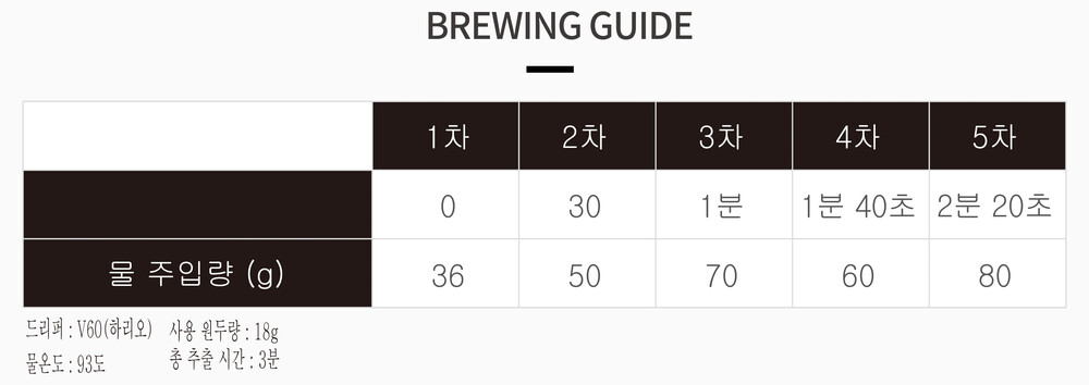 드리퍼 : V60, 물온도 : 93도, 원두 18g 사용